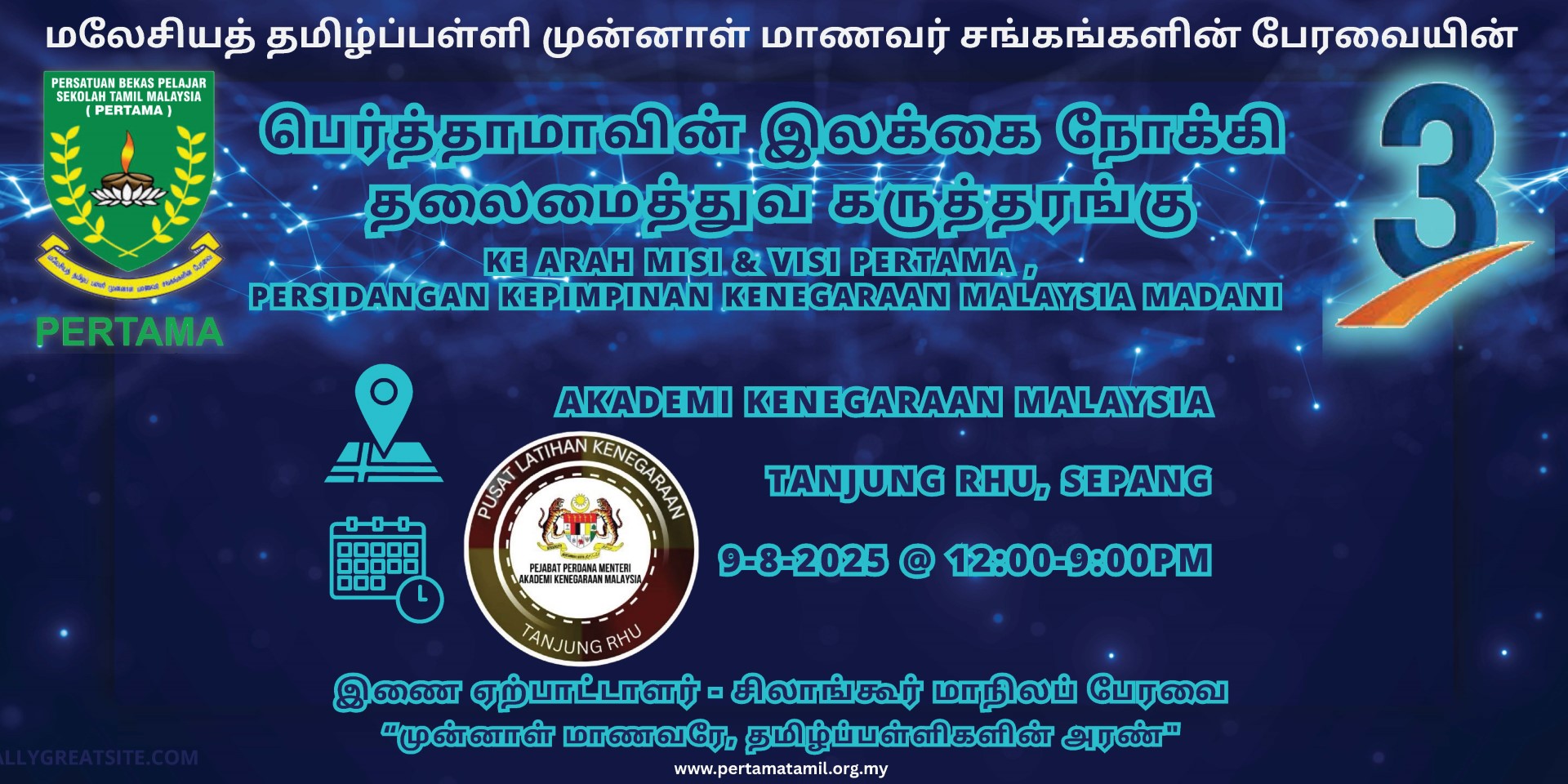 3rd AGM 3rd year of Gabungan Persatuan Bekas Pelajar Sekolah Tamil Malaysia (PERTAMA) was successfully held in SJK TAMIL Sarawathy ,Petaling Kuala Lumpur. This event was attend by our Timbalan Menteri Pernerangan,Komunikasi Dan Kebudayaan YB Senator Dato Maglin...